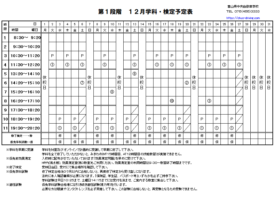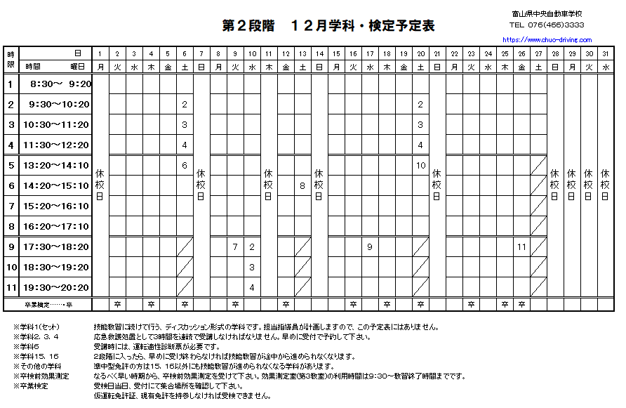 2025年12月学科予定表【第2段階】