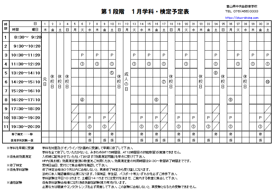2026年 1月学科予定表【第1段階】