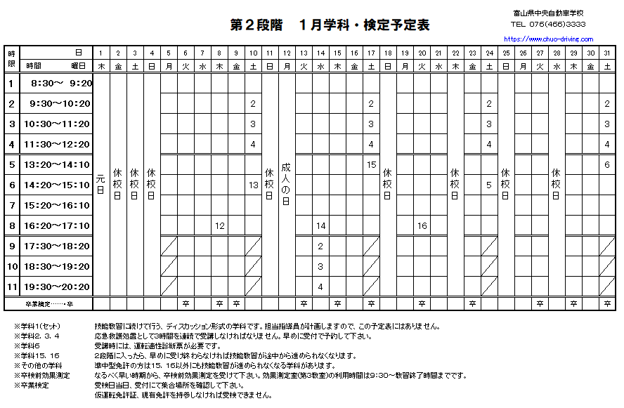 2026年 1月学科予定表【第2段階】