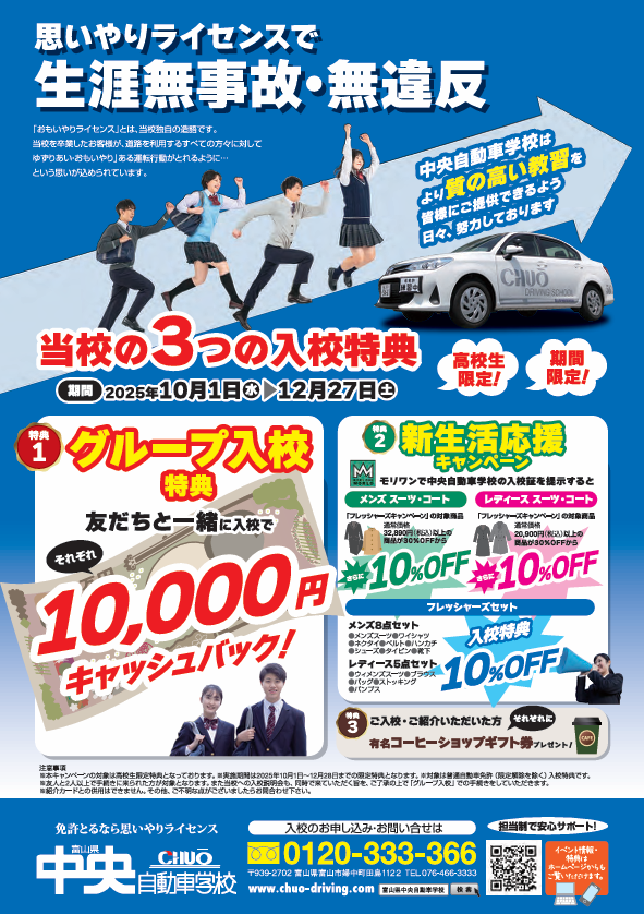 進学や就職前に免許取得を目指すなら、今がチャンスです!